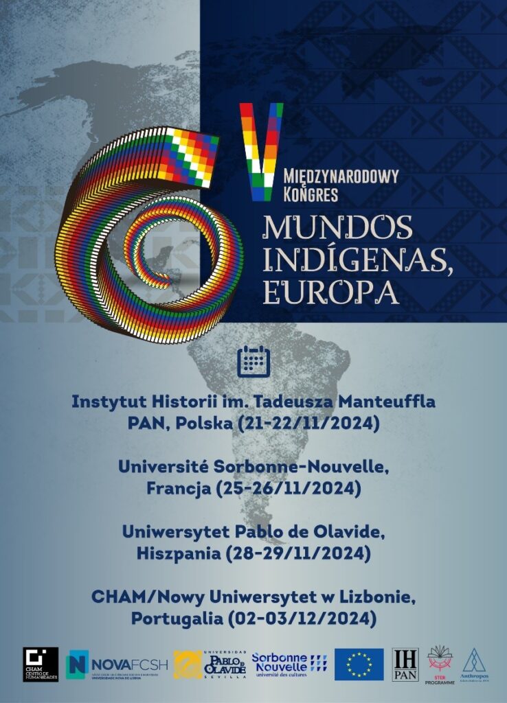 The International Congress on Indigenous Worlds (COIMI) takes place every two years and was launched as part of the Permanent Seminar on Indigenous Worlds – Abya Yala (SEPMIAI) at the Center for Humanities (CHAM/NOVA FCSH–UAC) at the Universidade Nova de Lisboa, Portugal, together with the Universidade Federal de Campina Grande, Paraíba, Brazil, on April 27–28, 2015. In 2017, the SEPMIAI/CHAM-UNL group organized the II COIMI, with the support of the Pablo Olavide University, Seville, Spain, and in 2019 we started to organize the event also with the Sorbonne University, Paris, France. This year, 2024, the V COIMI – Europe will also take place in Warsaw, Poland, at the Institute of History of the Polish Academy of Sciences, Poland, with the central theme: Sources and Interethnic Narratives about Indigenous Peoples in the Past and their Reflections in the Present. COIMI is a space for building a larger collaborative network on a national and international level for discussions on topics related to the indigenous peoples of the Americas in the past and present. The V COIMI – Europe aims to expand the dialog between indigenous and non-indigenous researchers so that opportunities can be created for new epistemological, historical, documentary, anthropological, pedagogical, and other interdisciplinary avenues.